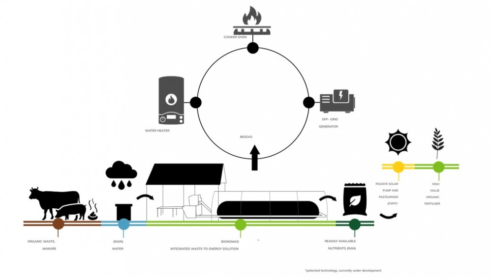 Their biogas and nutrient recovery systems are especially designed for small farms to turn their agricultural waste into biofuels for heating, and an enriched liquid fertiliser.